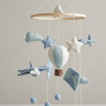 Skab en rolig og sanselig stemning med denne fine uro, designet specielt til at hænge over Den Originale Sansegynge. Uroen er pyntet med små, håndlavede luftballoner og drager i blød filt, som danser stille i luften, når gyngen bevæger sig – en smuk og beroligende detalje for dit barn at kigge på under leg og afslapning.