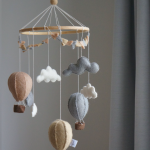 Skab en rolig og sanselig stemning med denne fine uro, designet specielt til at hænge over Den Originale Sansegynge. Uroen er pyntet med små, håndlavede luftballoner og vimpler i blød filt, som danser stille i luften, når gyngen bevæger sig – en smuk og beroligende detalje for dit barn at kigge på under leg og afslapning.