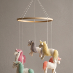 Skab magi og ro med en håndlavet uro i pastel. De søde enhjørninger bevæger sig blidt og stimulerer barnets sanser.